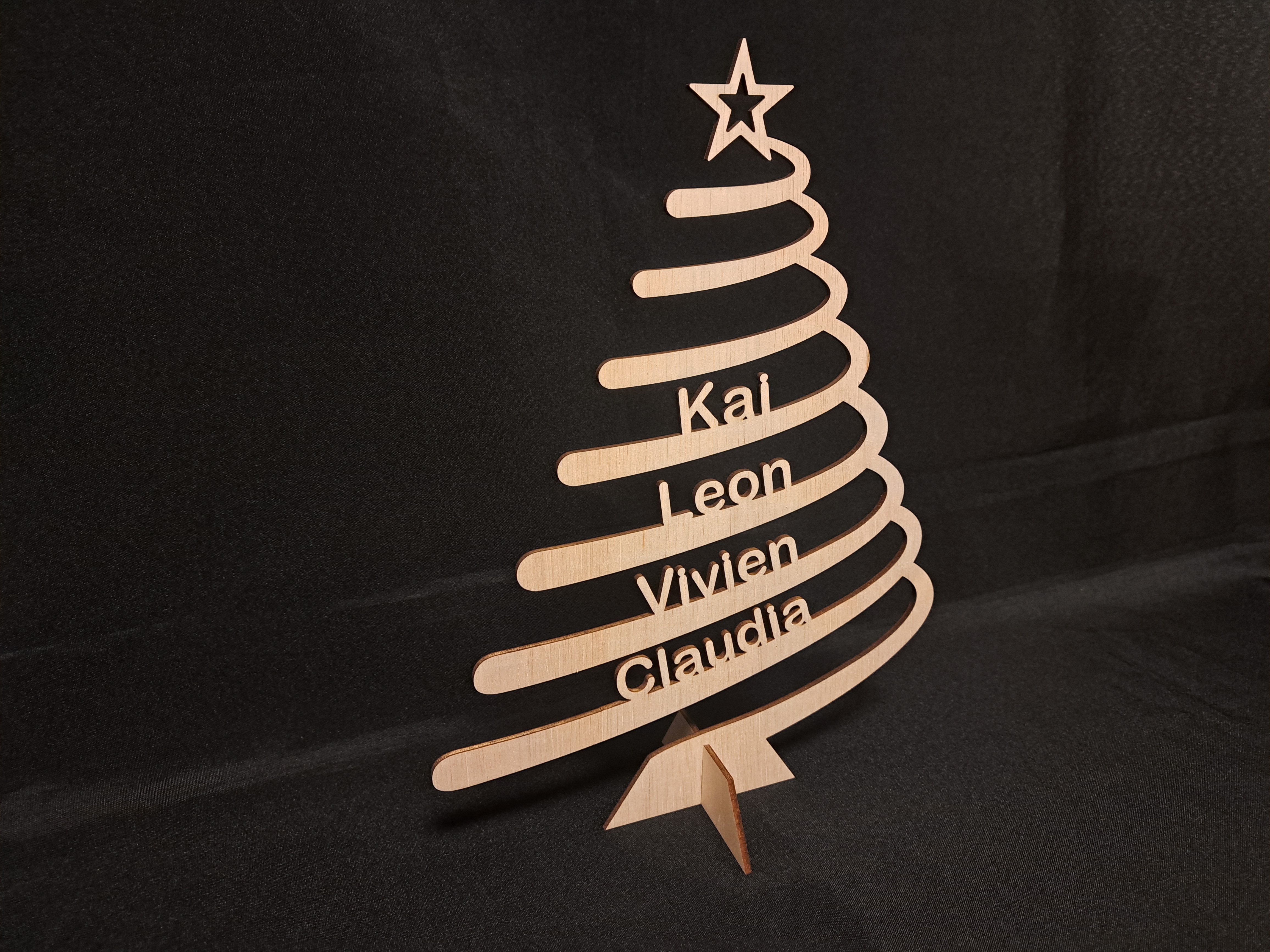 Personalisierter Holz-Weihnachtsbaum mit Namen – liebevolle Familiendeko zu Weihnachten